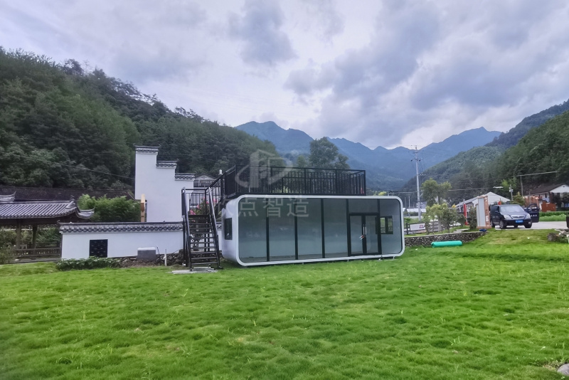 內(nèi)部基本配置齊全,落地接水電即可使用。可以加裝空調(diào)、桌椅等。