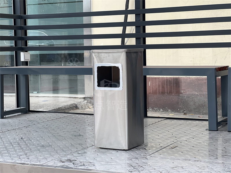 鋼化玻璃吸煙亭:光線明亮,安裝方便,工廠組裝好成品整體運輸吊裝到位,堅固耐用,使用壽命至少十年,重型鋼結構,抗臺風。頂部使用鋁板防水隔熱材料,保證下雨不漏水,隔音效果優良。并且內置電路,只要通電就可以在亭內使用電力設施,室內配置休息椅和煙灰桶,方便的功能,時尚的外觀,實在是廣大禁煙場所的不二之選!