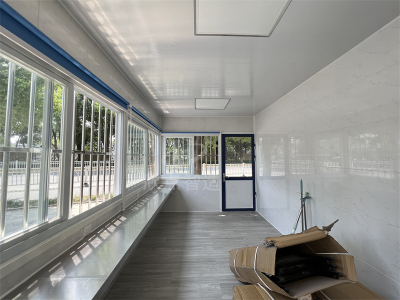 2、治安崗?fù)づ渲糜校汗ぷ髋_(tái)、插座、配電箱、開(kāi)關(guān)、LED燈等,根據(jù)要求還可以加配:監(jiān)控、空調(diào)、辦公椅、文件柜、LED顯示屏、警燈、警用裝備等。使用空間相對(duì)寬闊。崗?fù)?nèi)外墻板采用金屬環(huán)保板材,無(wú)毒無(wú)異味。工廠預(yù)制生產(chǎn)成品生產(chǎn)送貨上門,真正做到拎包入住。