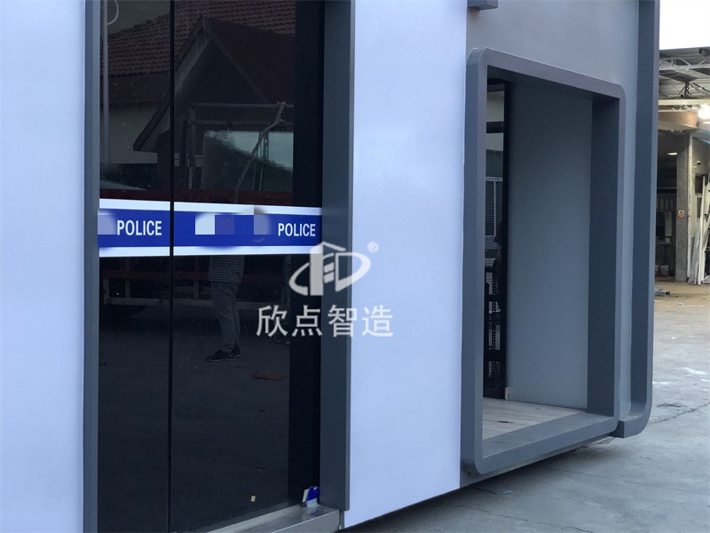 2、治安崗?fù)づ渲糜校汗ぷ髋_、插座、配電箱、開關(guān)、LED燈等,根據(jù)要求還可以加配:監(jiān)控、空調(diào)、辦公椅、文件柜、LED顯示屏、警燈、警用裝備等。使用空間相對寬闊。崗?fù)?nèi)外墻板采用金屬環(huán)保板材,無毒無異味。工廠預(yù)制生產(chǎn)成品生產(chǎn)送貨上門,真正做到拎包入住。
