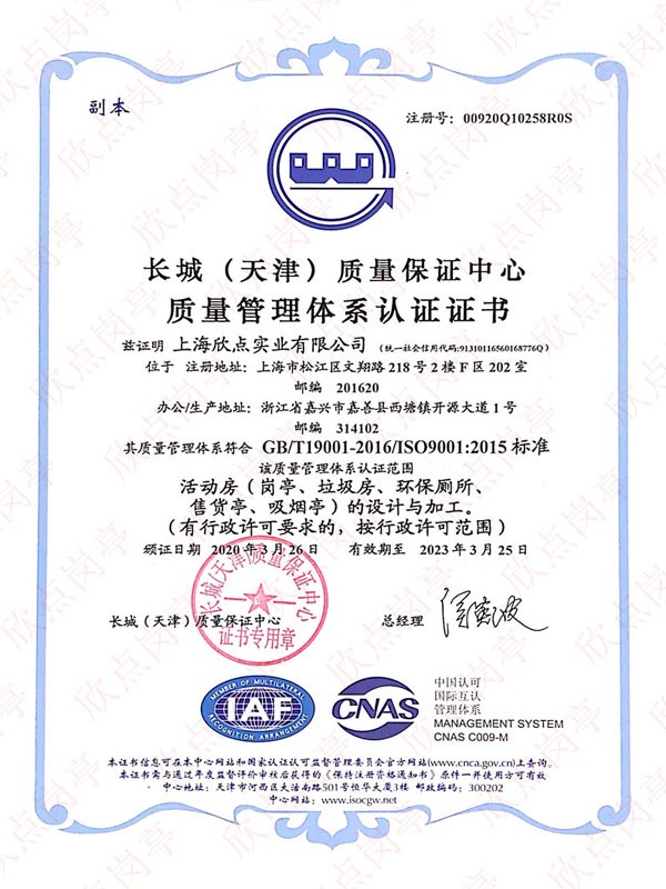 質量管理體系認證證書