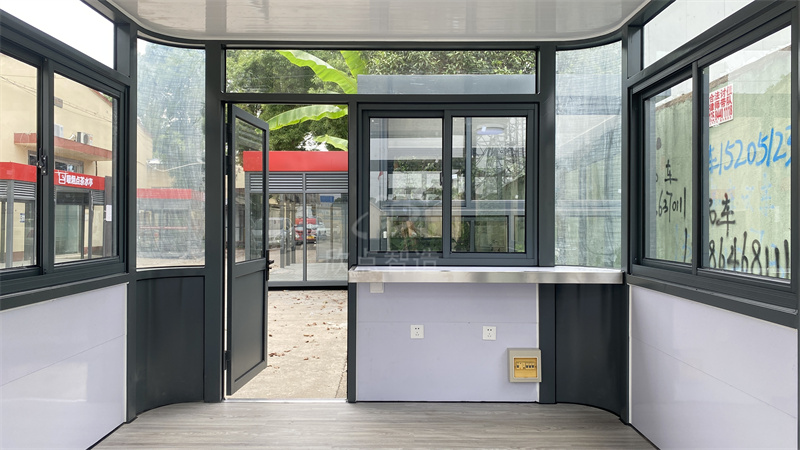 3、使用空間更合理化。用戶在定制保安崗亭時,都會根據其里面工作的人數和需裝置的辦公設備及保安崗亭的放置區域的大小來確定崗亭的尺寸,廠家還會來根據你的尺寸來設計空間,使空間更最大化的利用起來,這樣使保安崗亭使用空間更加合理化。