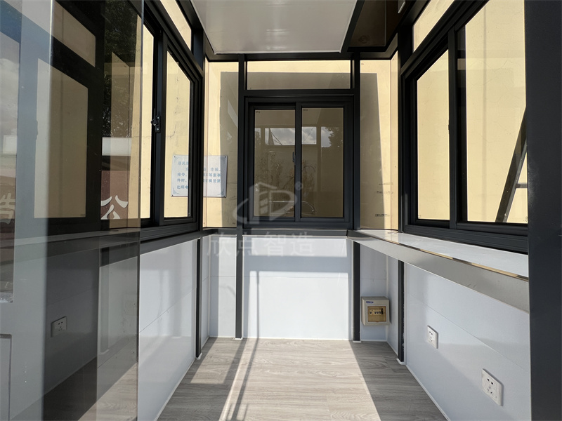 3、使用空間更合理化。用戶在定制保安崗?fù)r,都會根據(jù)其里面工作的人數(shù)和需裝置的辦公設(shè)備及保安崗?fù)さ姆胖脜^(qū)域的大小來確定崗?fù)さ某叽纾瑥S家還會來根據(jù)你的尺寸來設(shè)計空間,使空間更最大化的利用起來,這樣使保安崗?fù)な褂每臻g更加合理化。