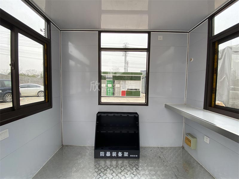 室內包含工作臺、插座、開關、LED燈、配電箱、電路等設備。真正的做到拎包可入住。崗亭通常是由專業公司提供定制服務,還可以根據場地類似景區環境來設計款式。