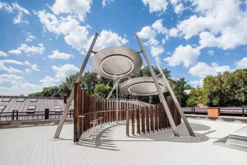 下雨時可避雨,晴天時能遮陽,黑夜里還有光,這是想舒舒服服抽煙的人對于吸煙區(qū)的基本功能的要求。莫斯科的這一頗具藝術(shù)感的涼亭裝置位于辦公樓樓頂,是大樓專門設(shè)計的吸煙區(qū)。設(shè)計師選用了鋼材、古木紋板和大理石作為主要材質(zhì),并在遮陽區(qū)內(nèi)放置了桌椅。這樣的設(shè)計不僅能有效的吸引吸煙者自覺前往,還為煙民們提供了一個交流平臺,大大的減少了隨地扔煙頭的行為,也減小二手煙對其他人的傷害!