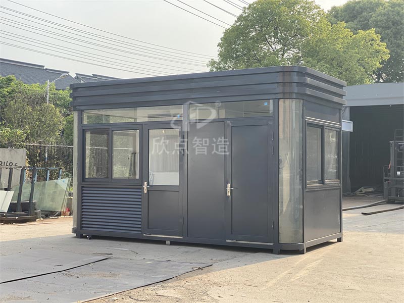 3、使用空間更合理化。用戶在定制保安崗亭時,都會根據其里面工作的人數和需裝置的辦公設備及保安崗亭的放置區域的大小來確定崗亭的尺寸,廠家還會來根據你的尺寸來設計空間,使空間更最大化的利用起來,這樣使保安崗亭使用空間更加合理化。